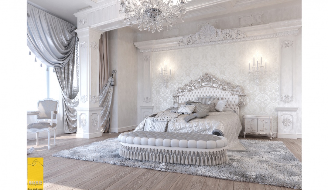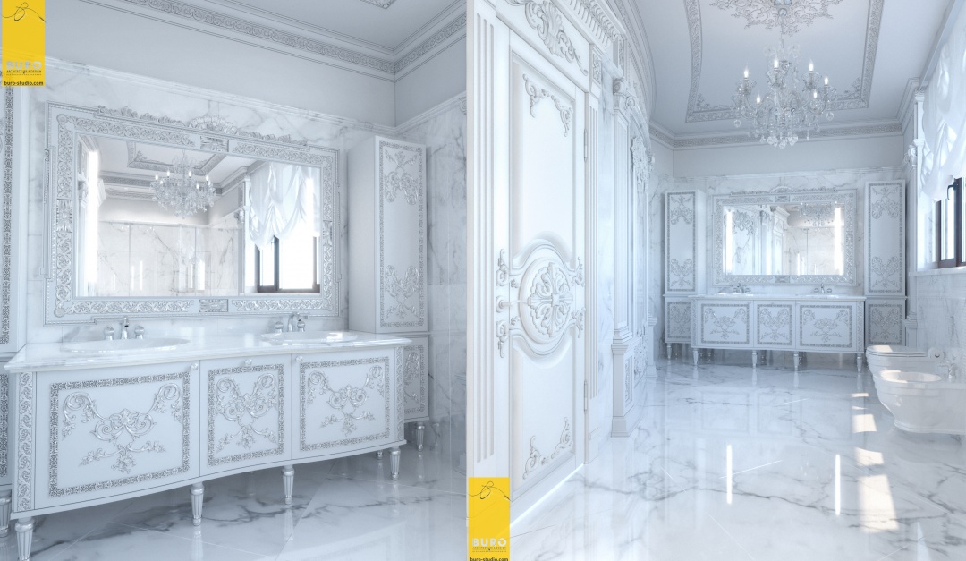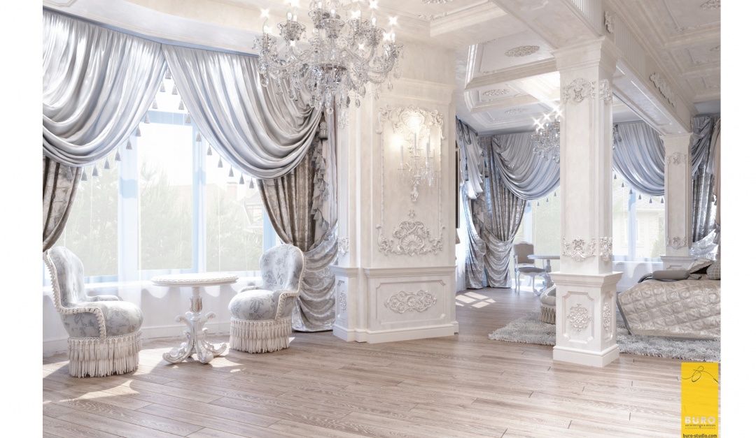 Работая над созданием этого пространства мы решили отдать предпочтение одному цвету – белому, что является довольно рискованным решением для классики, где традиционно используется мягкая цветовая гамма бежево-коричневых тонов.