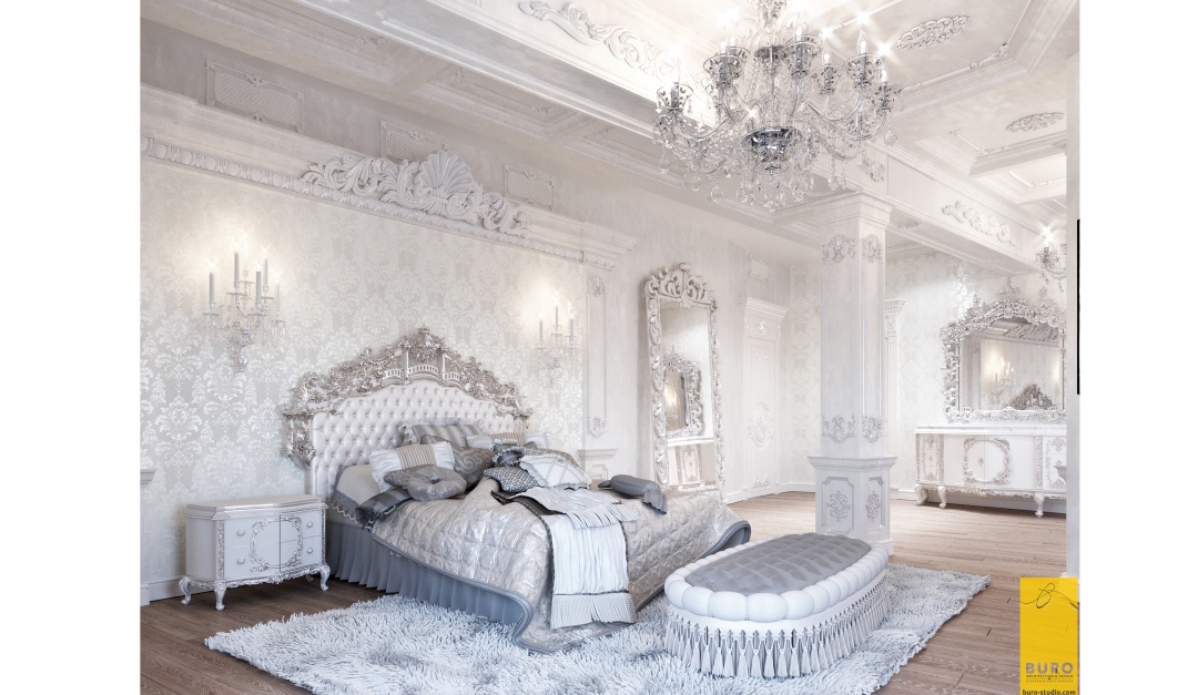 Интерьер этой квартиры задумывался как олицетворение изысканной роскоши. Ажурный лепной декор, мебель с росписью, натуральный камень, массивные ткани, хрусталь – все это не перегружает, а наполняет интерьер.
