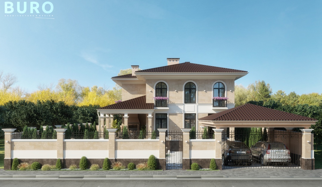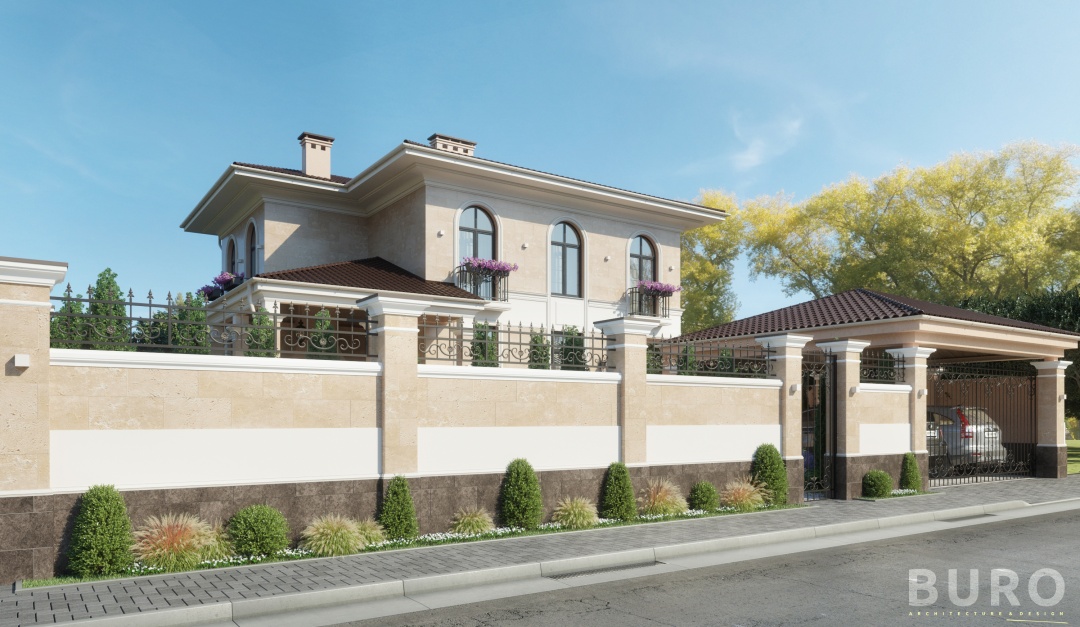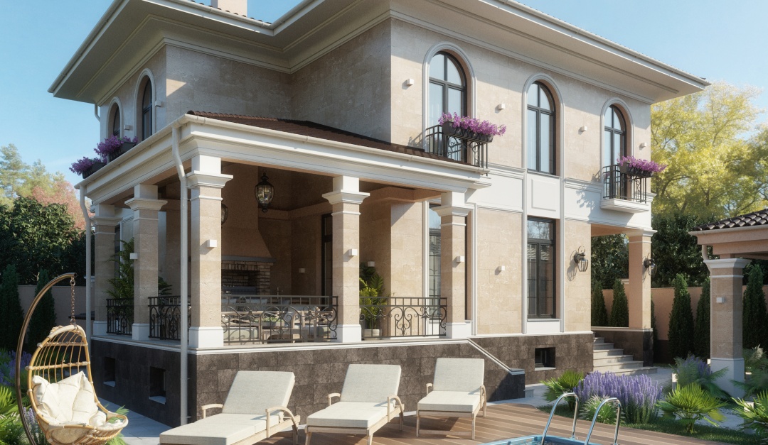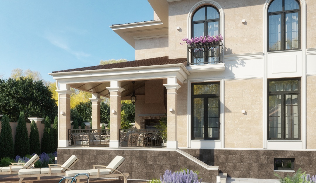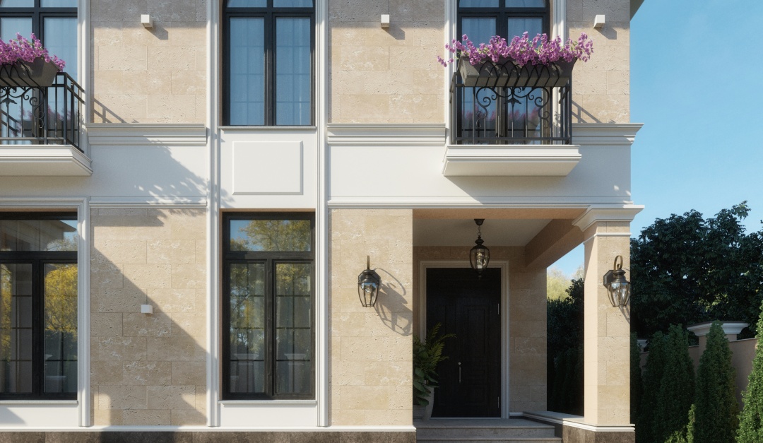 Дом с фасадом из травертина