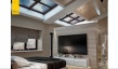 Центральное место интерьера занимает ванная комната со стеклянными перегородками. Смелое решение, которое полностью поддержал заказчик. Минимум закрытых пространств – максимум стекла. Даже гардеробная отделена просто стеклянными перегородками.