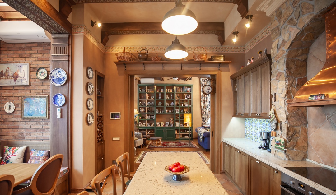 квартири в стилі, який можна охарактеризувати як "кантрі-лофт с елементами колоніального стилю". Нестандартне рішення для міста, але нам вдалося перенести
