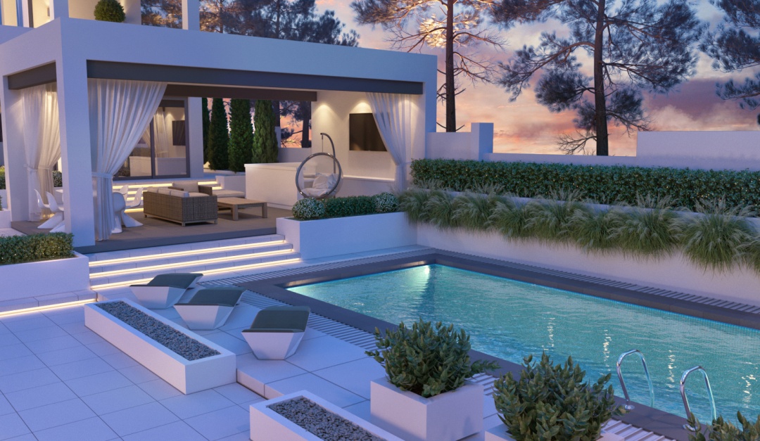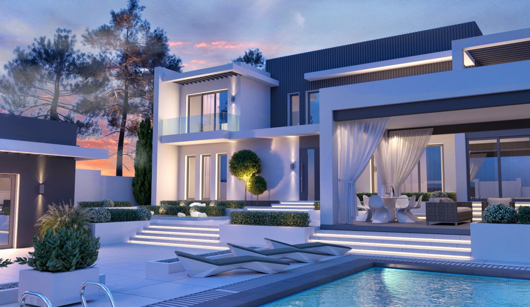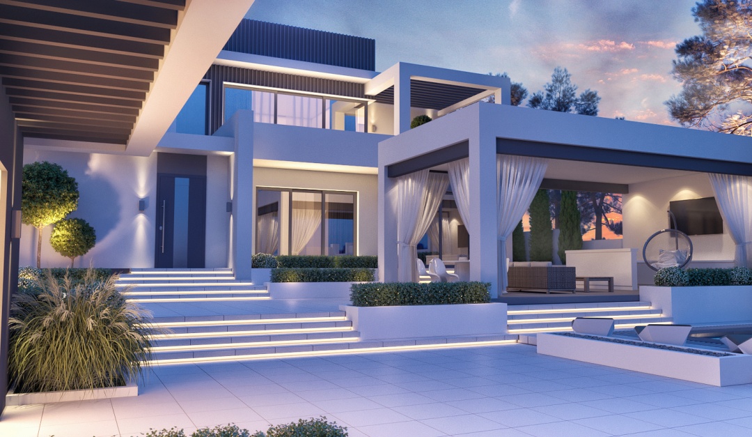 Основная доминанта стиля – это геометричность форм, четкое цветовое решение и практичность материалов. Здесь мы использовали минимальное количество декоров, чтобы избежать излишней пестроты. Здесь преобладают прямоугольные плоскости, четкие линии, окна от пола до потолка, белый цвет, разнообразные ниши и подсветка.