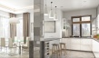 Интерьер коттеджа выполнен в пастельных тонах: бело-серо-бежевые цвета превалируют как в отделке, так и в выборе мебели. Одним из акцентов в интерьере является камин в зоне гостиной. Именно здесь будет собираться большая компания для вечерних разговоров и праздников. Мы сделали специальную стенку для хранения дров, которая максимально вписалась в существующий интерьер.