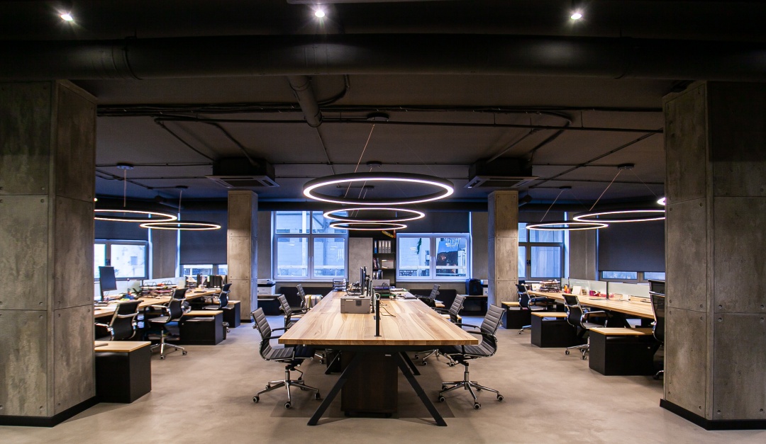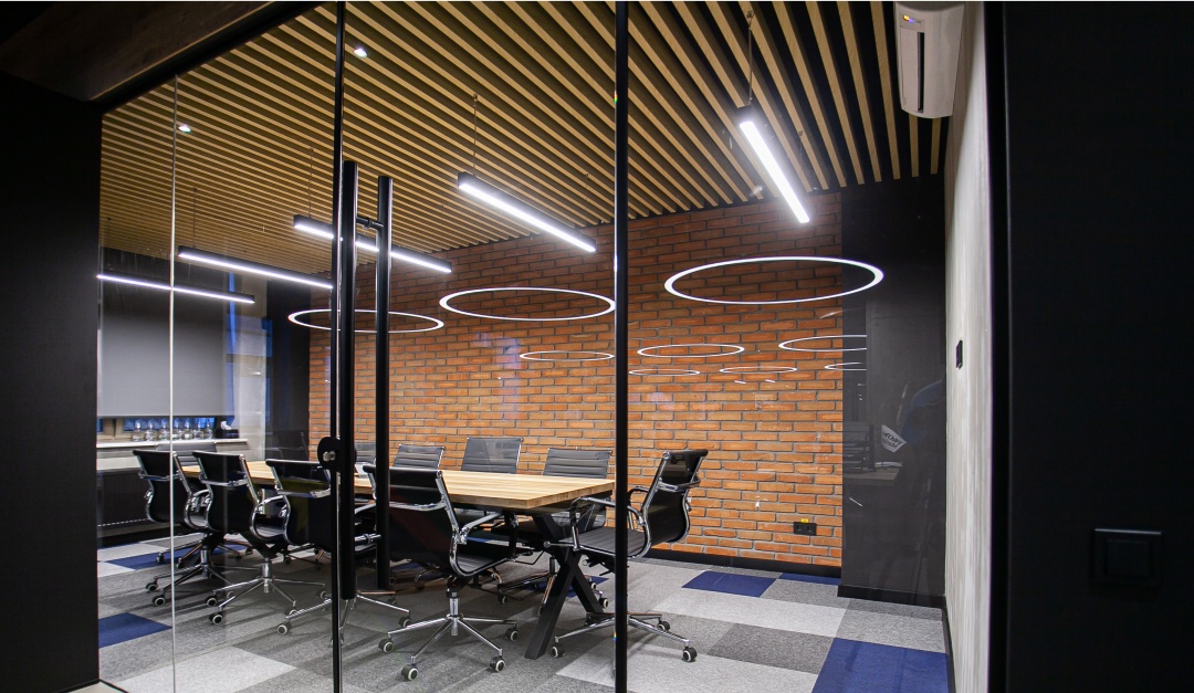 Совсем недавно закончили офис одной очень интересной компании. Современной и динамичной!