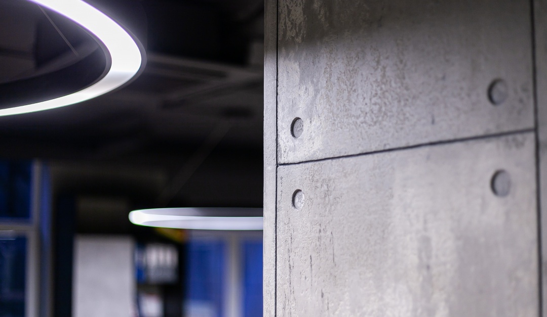 "микроцемент" инкрустированный черной полосой, которая "прошивает" весь