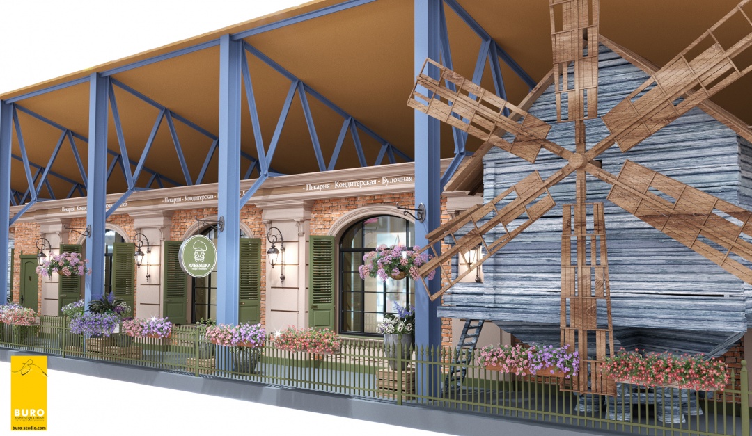 мельницы на фасаде пекарни. Она является не просто декоративным элементом, а двигается,