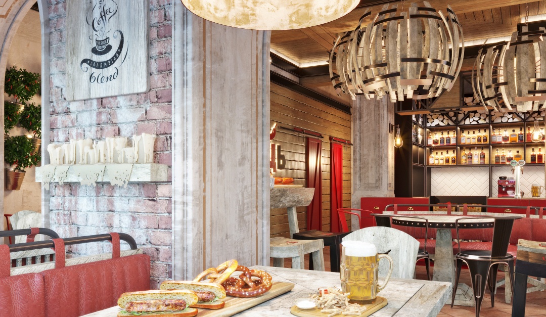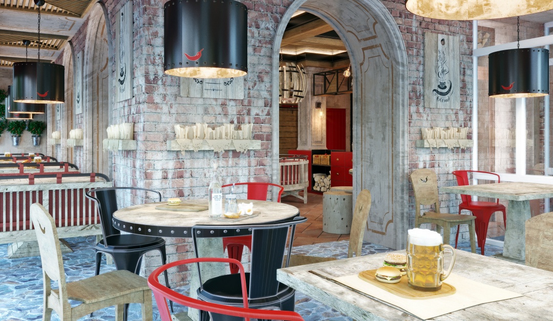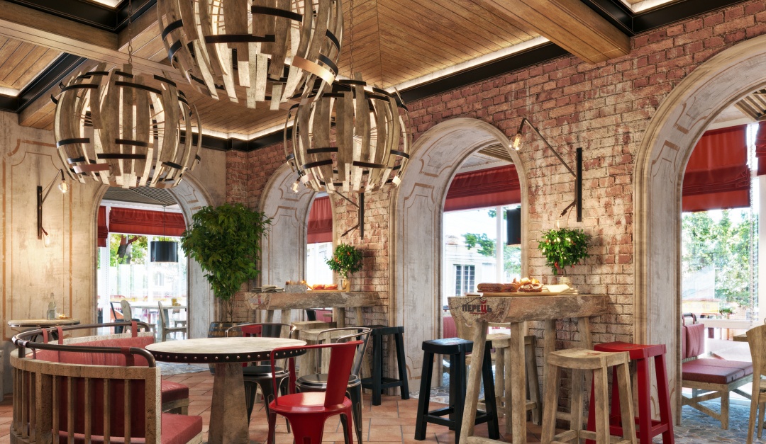 Перед нами стояла сложная задача сделать интерьер бистро этническим, но при этом уйти от традиционных украинских приемов. Мы смогли добиться идеальной концепции используя смешение различных стилей. Металлические декоры – элемент лофта, использование натуральных материалов – классика, а яркие цвета – ар-деко.