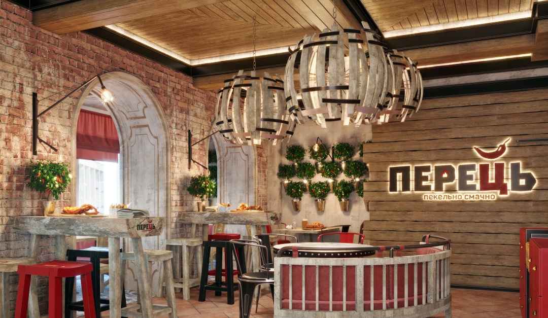 Студия BURO занималась созданием интерьеров для этно-бистро «Перец». Особенностью этого проекта является авторская нотка абсолютно во всем, начиная от общей концепции и заканчивая стульями и светильниками.