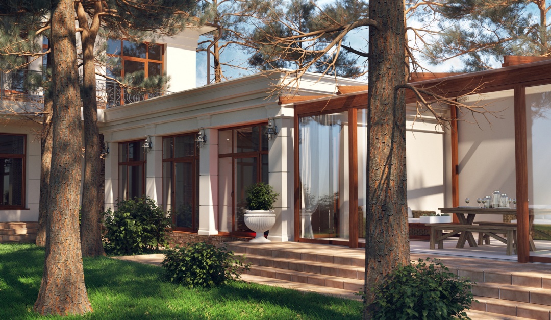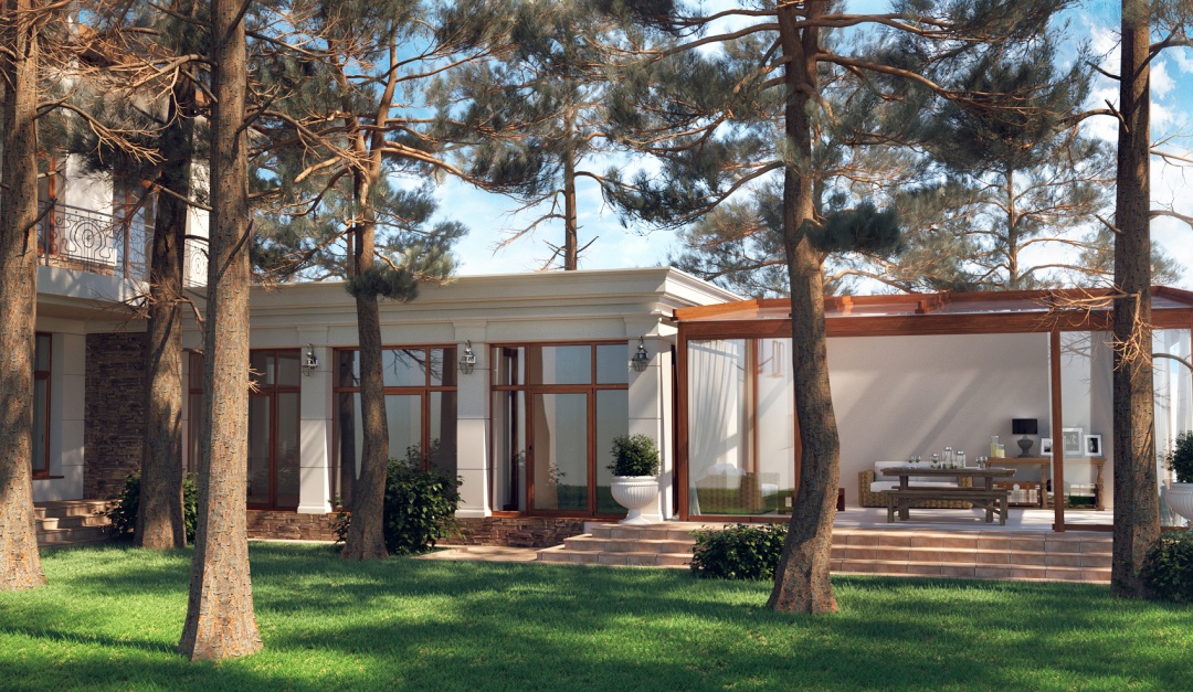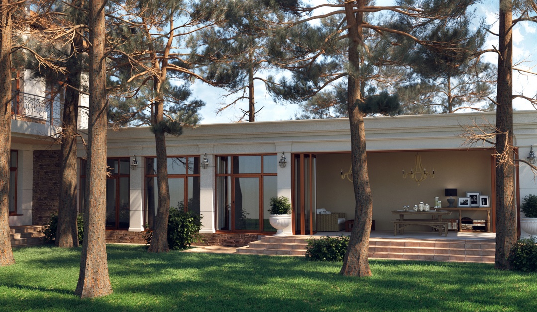 Терраса в сосновом лесу